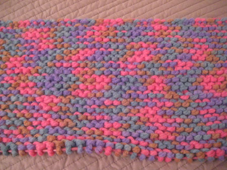 And finally, my last project is…another scarf! Nachaele invited me to join her, Kelly and Sam to knit on Wednesday night. The only problem was that I hadn’t brought any knitting with me that day! Obviously, that wasn’t very hard to resolve: