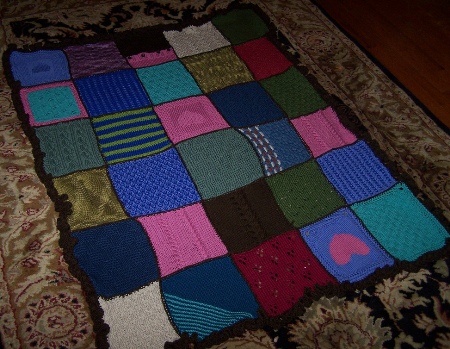 Several weeks ago a bunch of us knit squares to make this afghan for Nicole. I wanted to make more, but was only able to get 1 square done in time. You can see more pictures on Nicole’s blog or Marly’s blog!