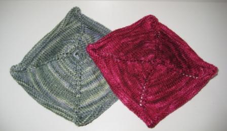 I almost got 6 squares out of the HandMaiden Casbah, but I had to use a second skein to bind off this square. I have to make 3 more squares out of this color.