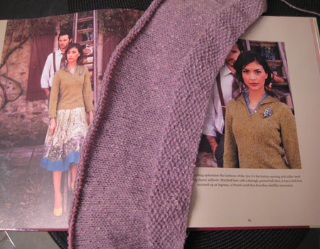 Last Friday I started a new sweater (Ravelry link). I’m knitting the back and I like how it’s turning out…I’m just not looking forward to all the seaming I’m going to have to do!