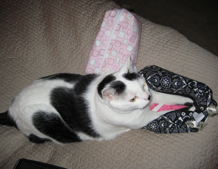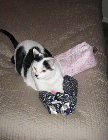 I needed a bag for another knitting project (I’ve got a case of startitis) and as soon as I put this bag down, Kennedy was on it (in it?)!