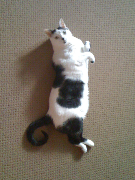 1. Those are very sweet and funny photos! She does look ladylike, but I can’t say that I’ve seen another cat with the curly-cue tail or the folded paws!