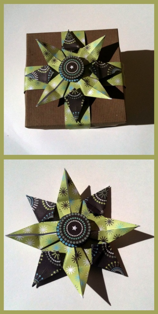 I love how my star turned out! Next time I make these, I’m going to find some nice double-sided paper to use. I had to be careful with this paper because the non-patterned side had a wonderful grid for cutting, but I didn’t want it to show through on the star.