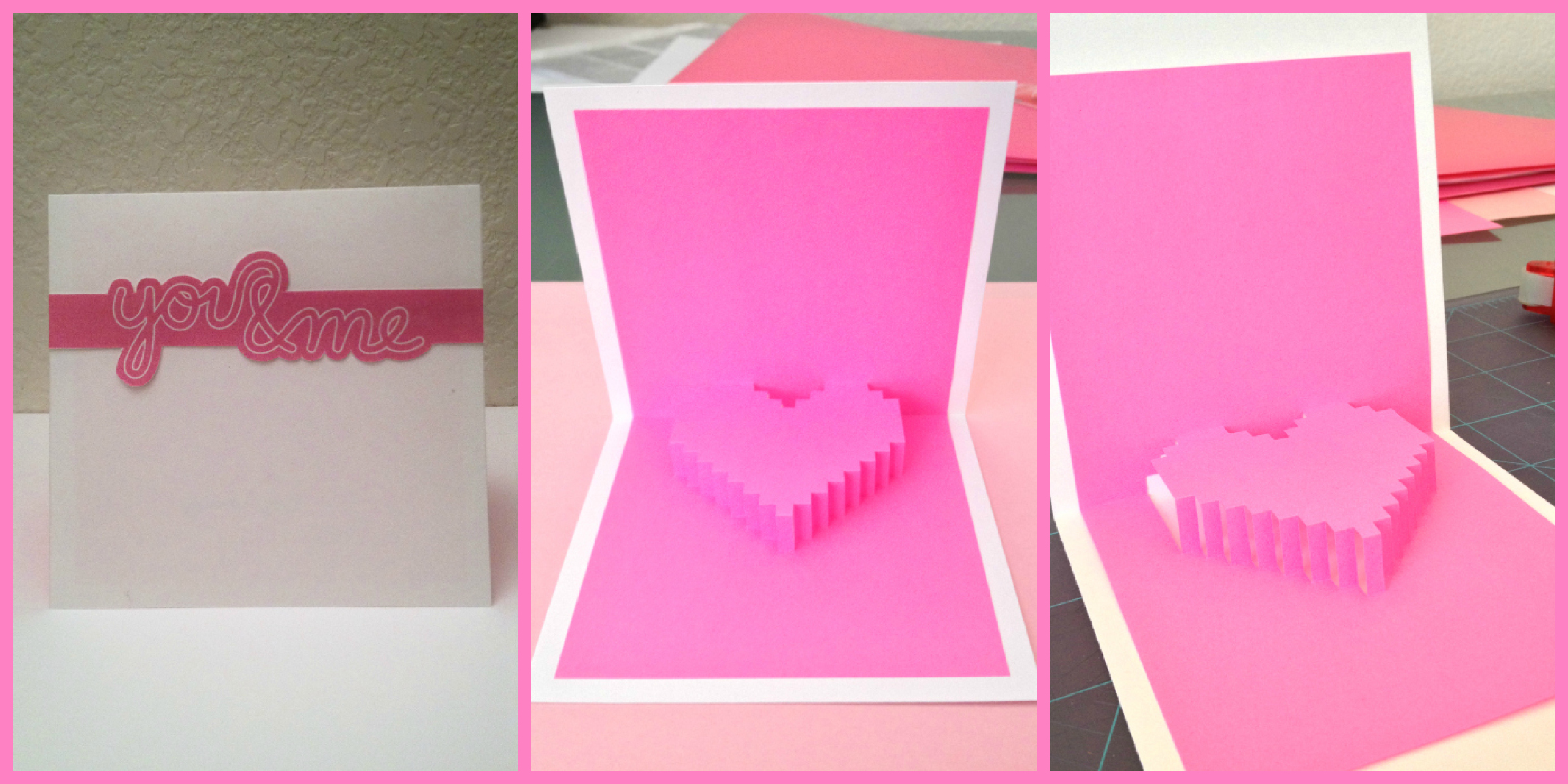 I saw this awesome pixelated popup heart card too late to make last year so I knew I had to make it this year! The ‘You & Me’ on the front came from a weekly freebie at A Little Hut. I’ve mentioned before how cool her paper crafts are :)