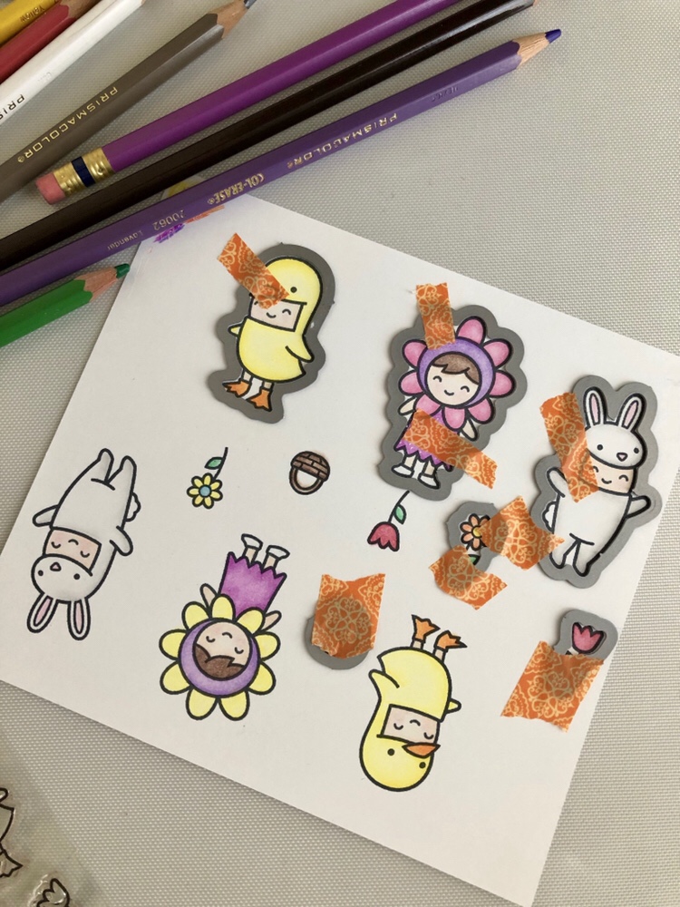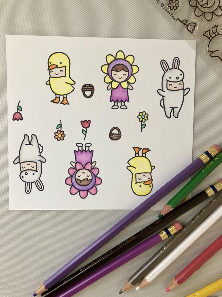 I won this stamp set from Lawn Fawn, and I’m glad I decided to buy the coordinating dies as well. They are just the cutest characters for Easter, and Spring in general.