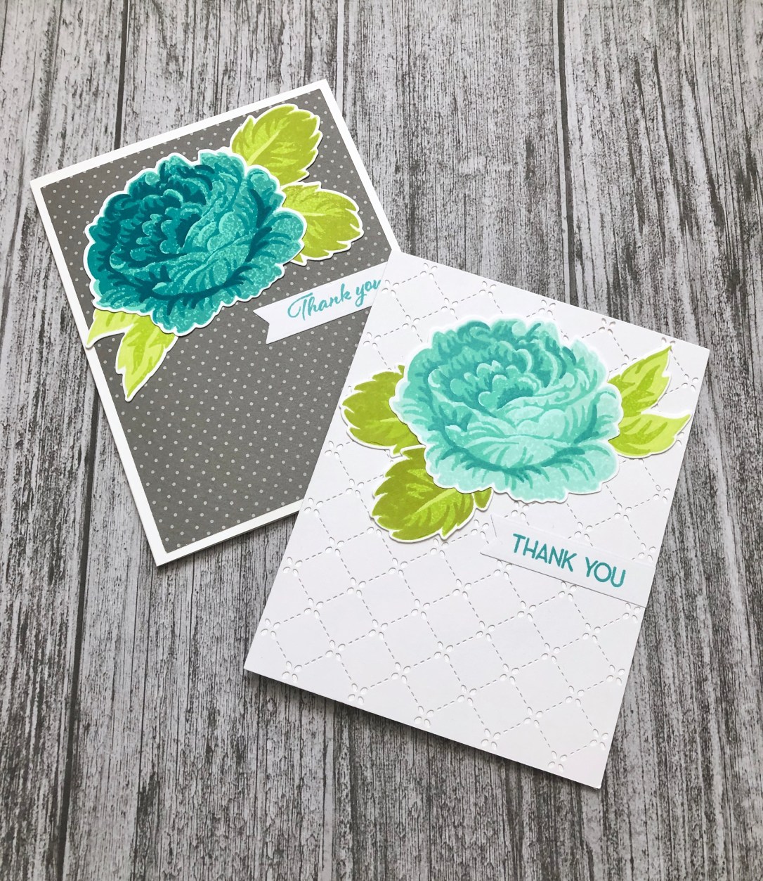 I used the Altenew Just For You stamp set to make both of the thank you cards. I just love how gorgeous these layered cabbage roses look!