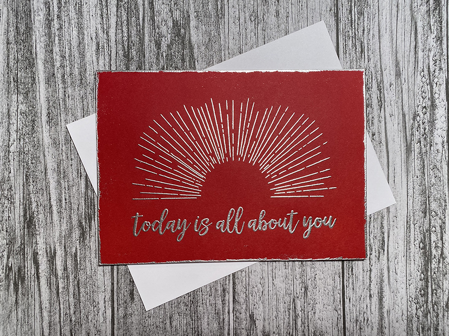 I used VersaMark Ink with the image and sentiment, and also around the edge of the card, then I heat embossed using WOW! Embossing Powder in Metallic Silver.