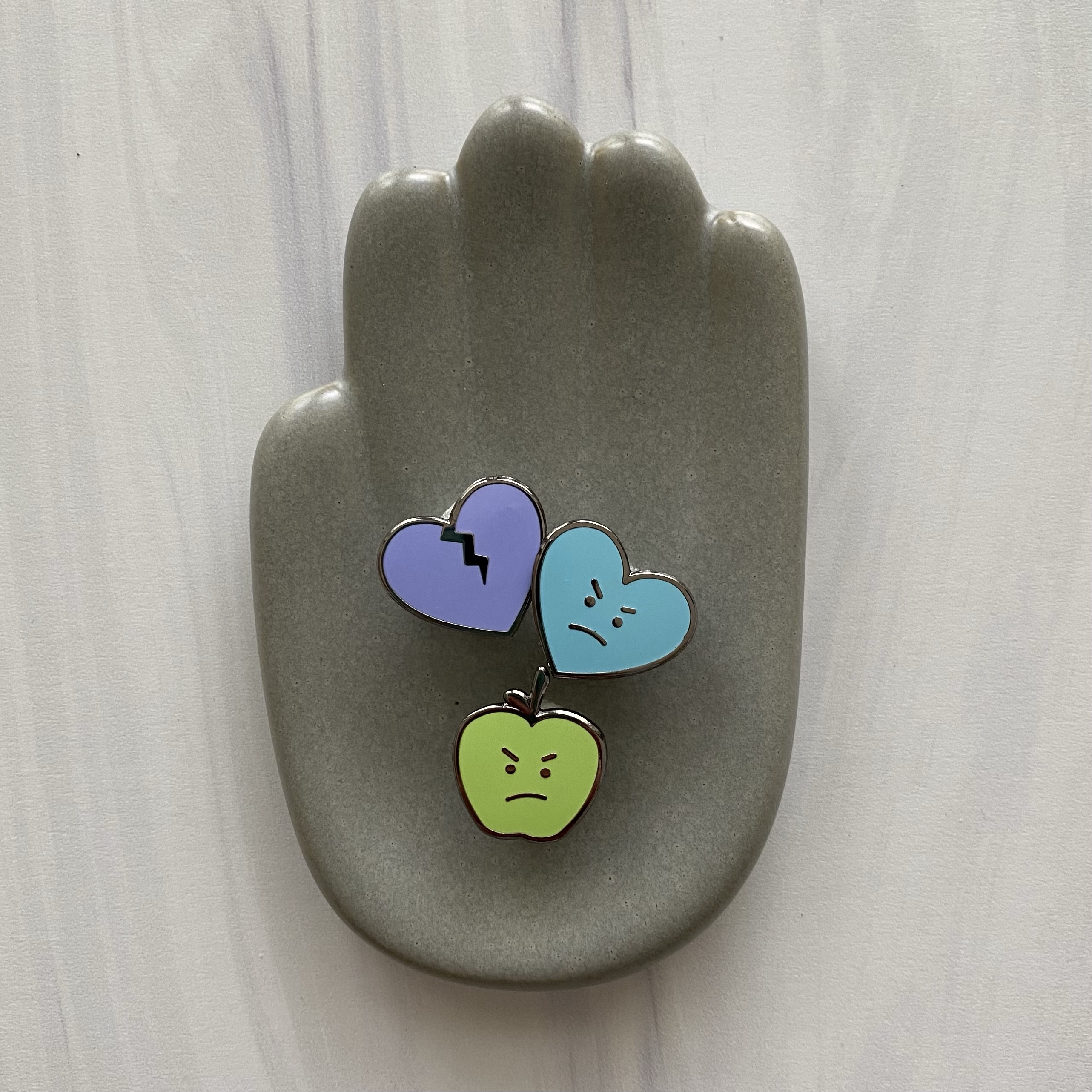 Currently The Ire Rye has 3 cute pins for sale: a broken heart, a grumpy heart, and a sour apple. These little pins were so fun to design and it was such a treat to actually hold them in my hand!