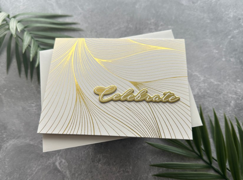My second card was created the same way, except this time I used gold foil on white cardstock. Isn’t the foil so pretty?