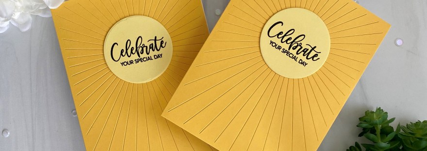 Happy May! I hope your month is off to a good start :) Today I have a couple simple birthday cards using a fun sunburst panel die. On the first card, I used a dark yellow cardstock and the panel die. Next I die cut a circle from a lighter yellow cardstock and then stamped… Continue reading Sunny Birthday Wishes